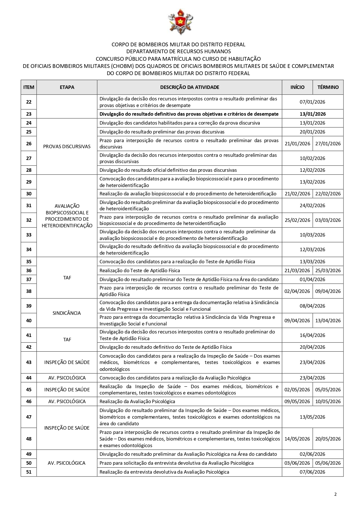 O IDECAN, organizador do concurso público do CBMDF 2025, informou que procedeu à retificação do Anexo V do Edital nº 01/2025. Em razão das alterações realizadas, informou ainda que o referido anexo passou a vigorar nos termos a seguir, substituindo integralmente a versão anteriormente publicada.